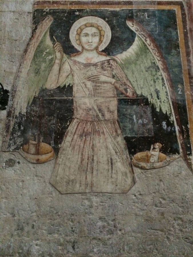 Sulla facciata l’Agnus Dei è il simbolo dell’ordine benedettino. Secondo una antica tradizione orale, lo sguardo dell’Agnus Dei del timpano e’ rivolto in un luogo dove e’ sepolto un tesoro.